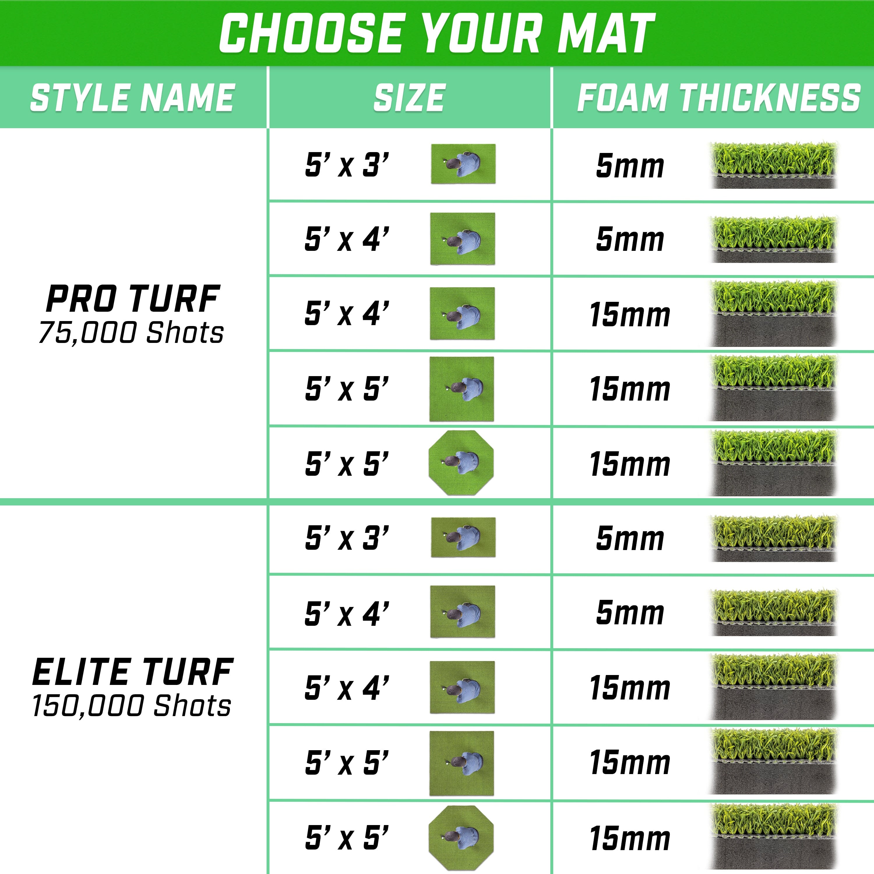 GoSports Golf Hitting Mat - ELITE 5 x 3 ft - 5 mm Artificial Turf Training Mat for Indoor/Outdoor Swing Practice, Includes 3 Rubber Tees