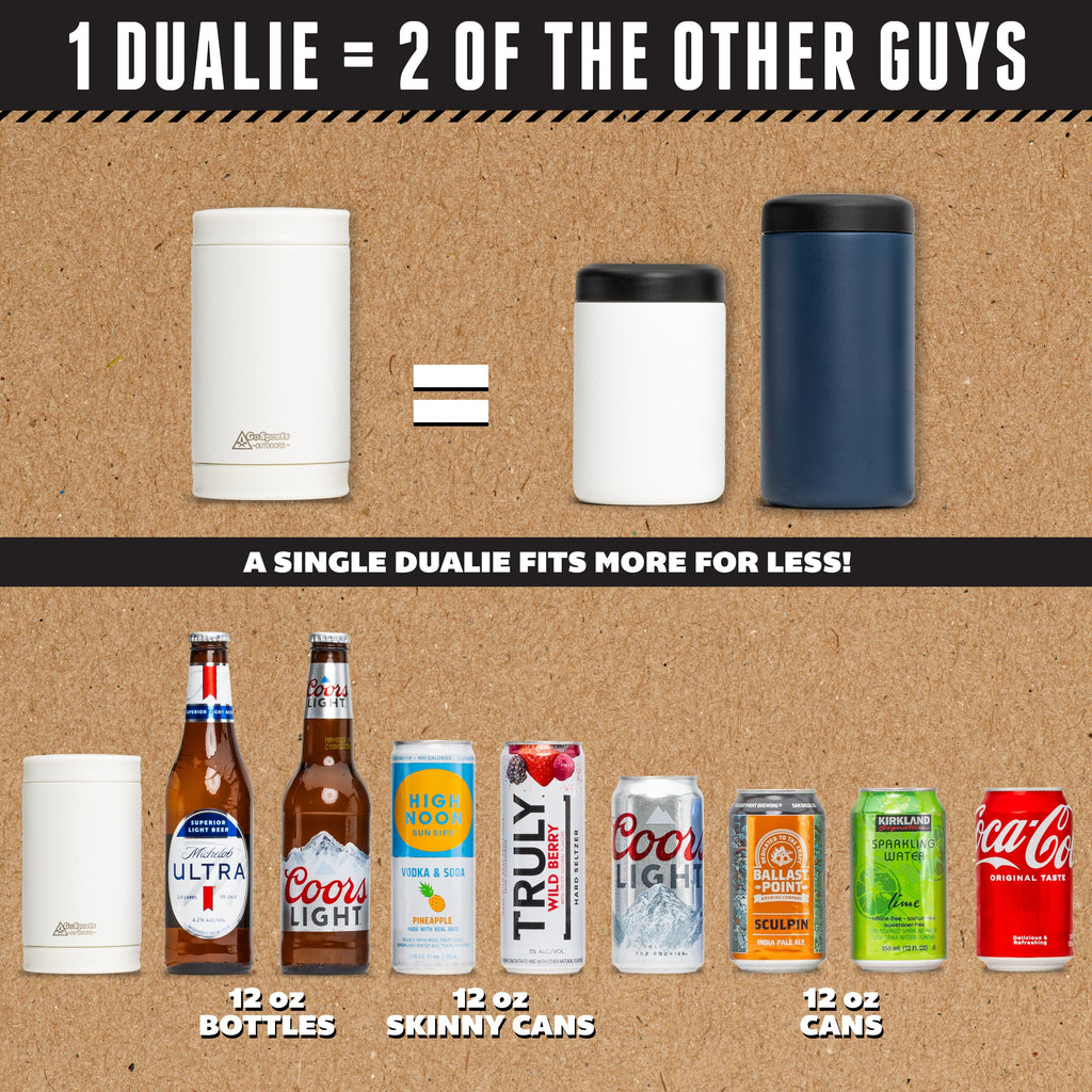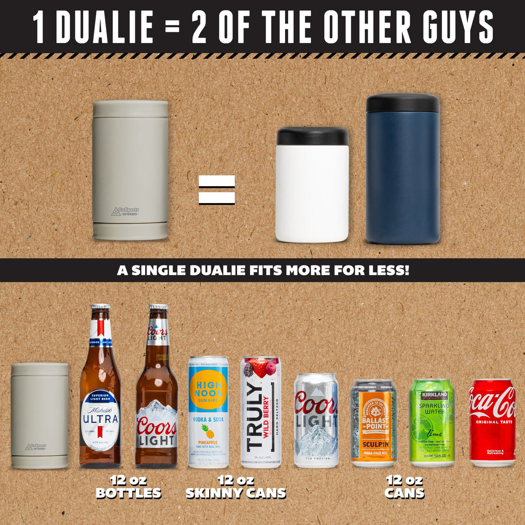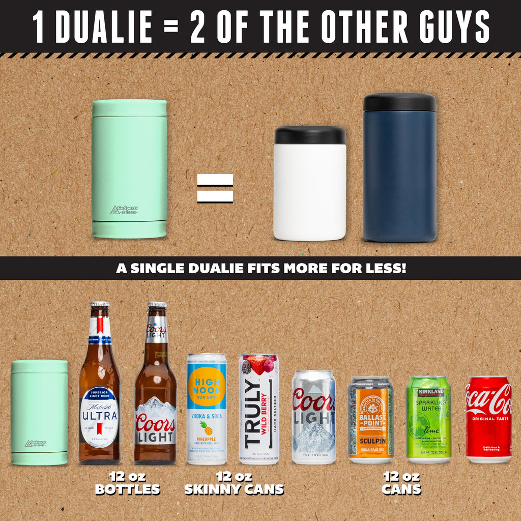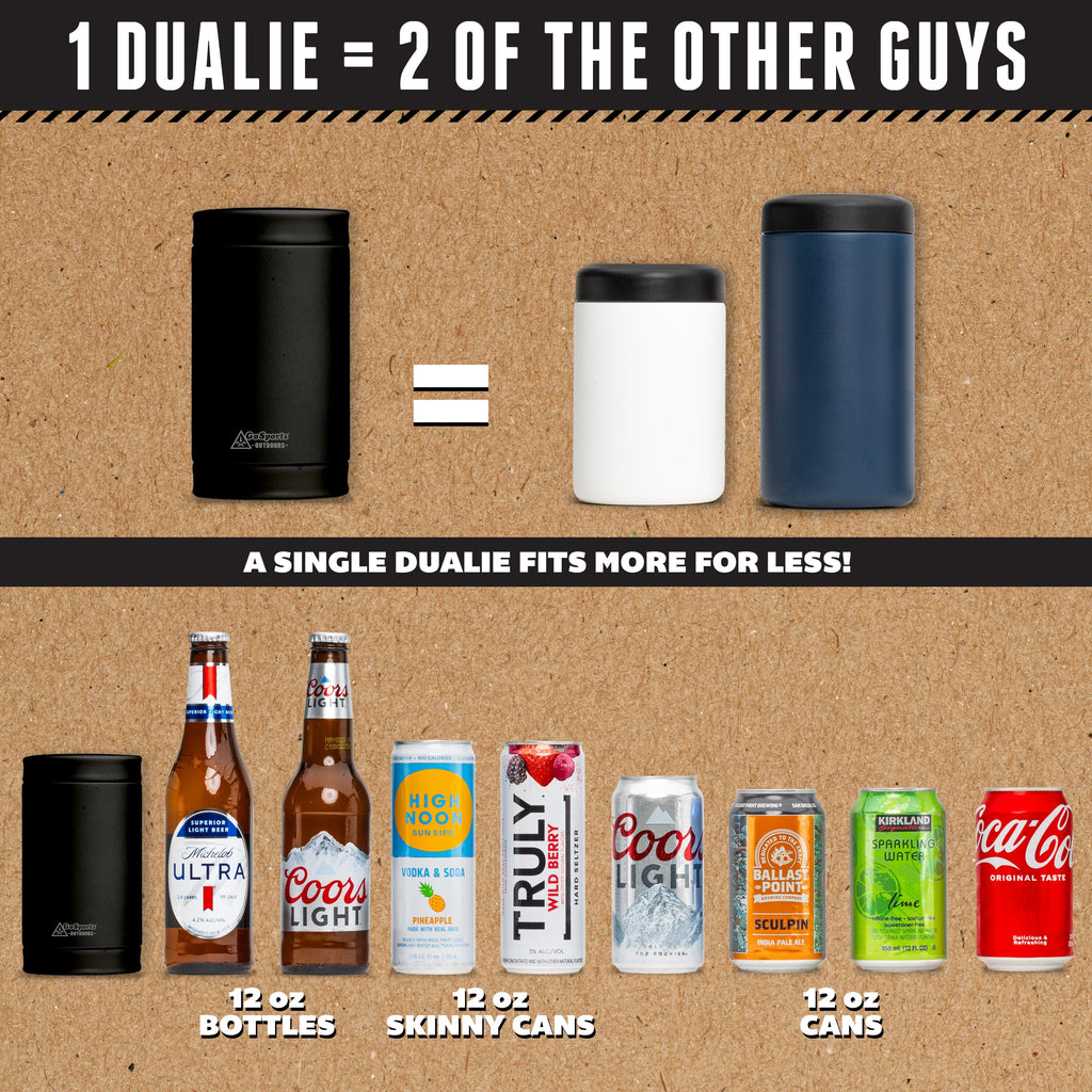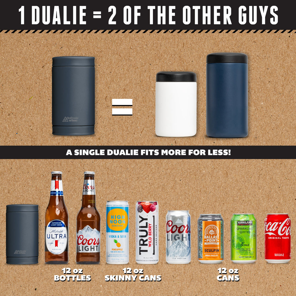 DUALIE 3 in 1 Insulated Can Cooler - Universal Size for 12 oz Cans, Slim Cans, and Bottles - Stainless GoSports DUALIE 3 in 1 Insulated Can Cooler - Universal Size for 12 oz Cans, Slim Cans, and Bottles - Stainless GoSports