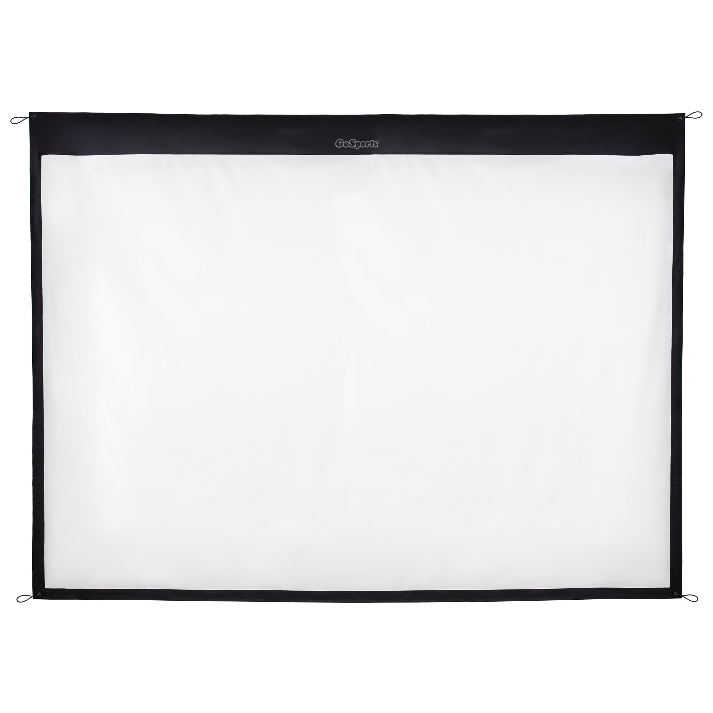 The GoSports ELITE Golf Simulator Screen provides a durable and high resolution backdrop for use with golf simulators and projectors. The screen measures 10’ x 7.5’ and can be universally hung or mounted using the corner grommets, or it seamlessly connects to the GoSports ELITE Golf Hitting Net (sold separately) for the ultimate simulator setup. The screen is made from durable polyester to hold up to hits from real golf balls while also providing a crisp picture. Compatible with any projector and golf simulator (not included). Also great to use for movie nights at home with the whole family!