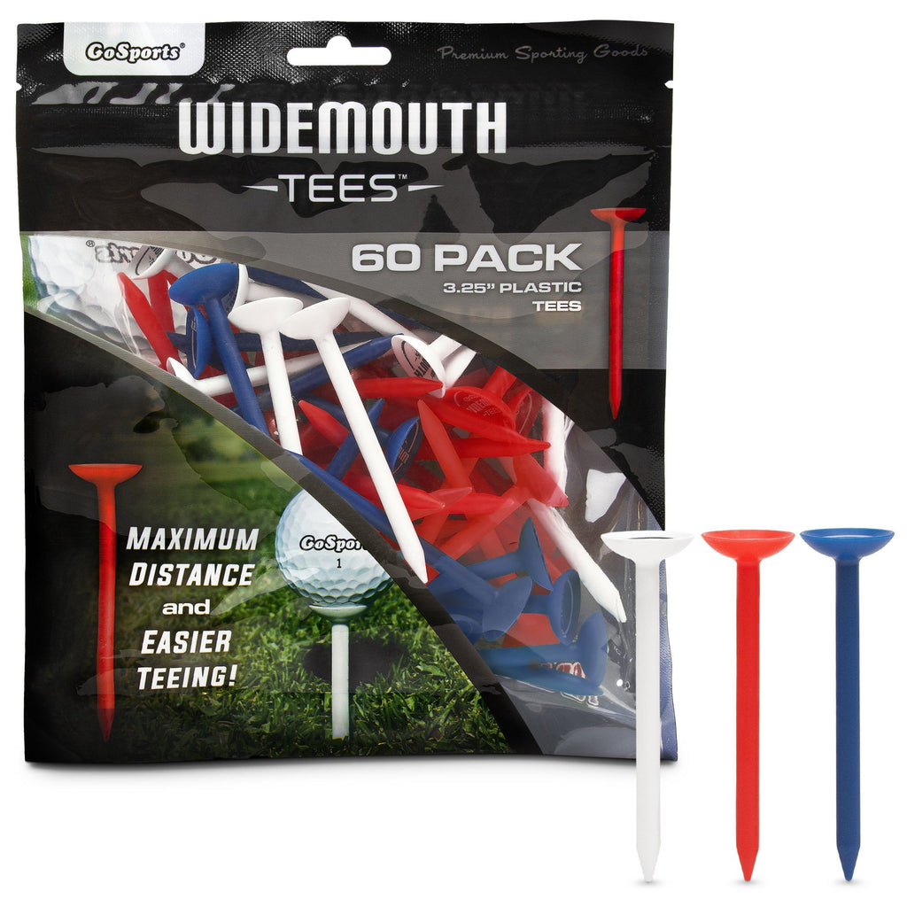 GoSports Widemouth tees promote maximum driving distance while also making teeing the ball easier. Widemouth Tees are made from durable plastic that will last countless rounds. This pack includes 60 3.25 inch plastic tees making it a perfect set for practice, games and sharing with friends out on the course! Step up your game today with the GoSports Widemouth Tees!