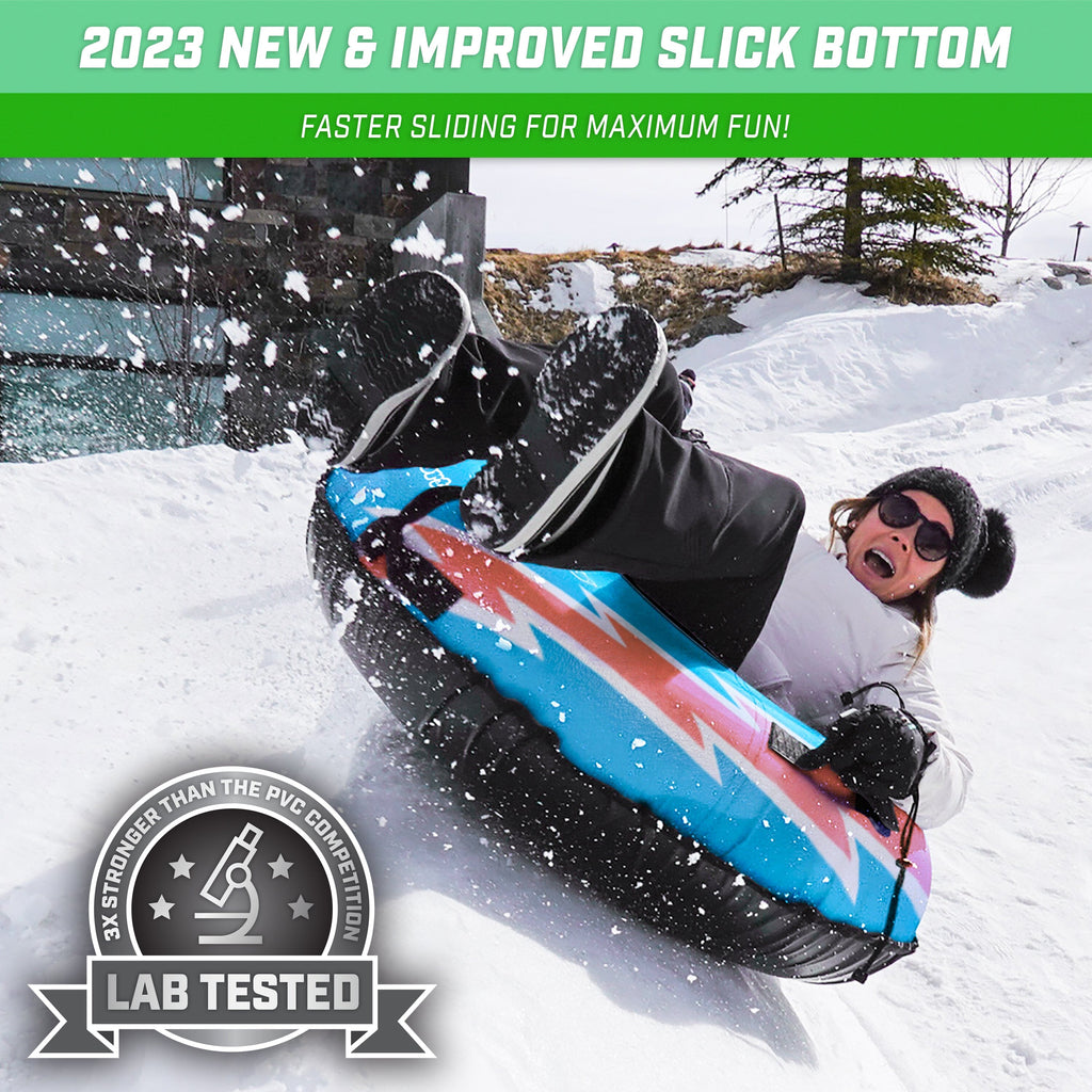 • HAND TOW STRAP INCLUDED: Pull the snow tube with ease and take the tube back uphill or ferry the kids around (hand pull only, never to be towed with vehicles)