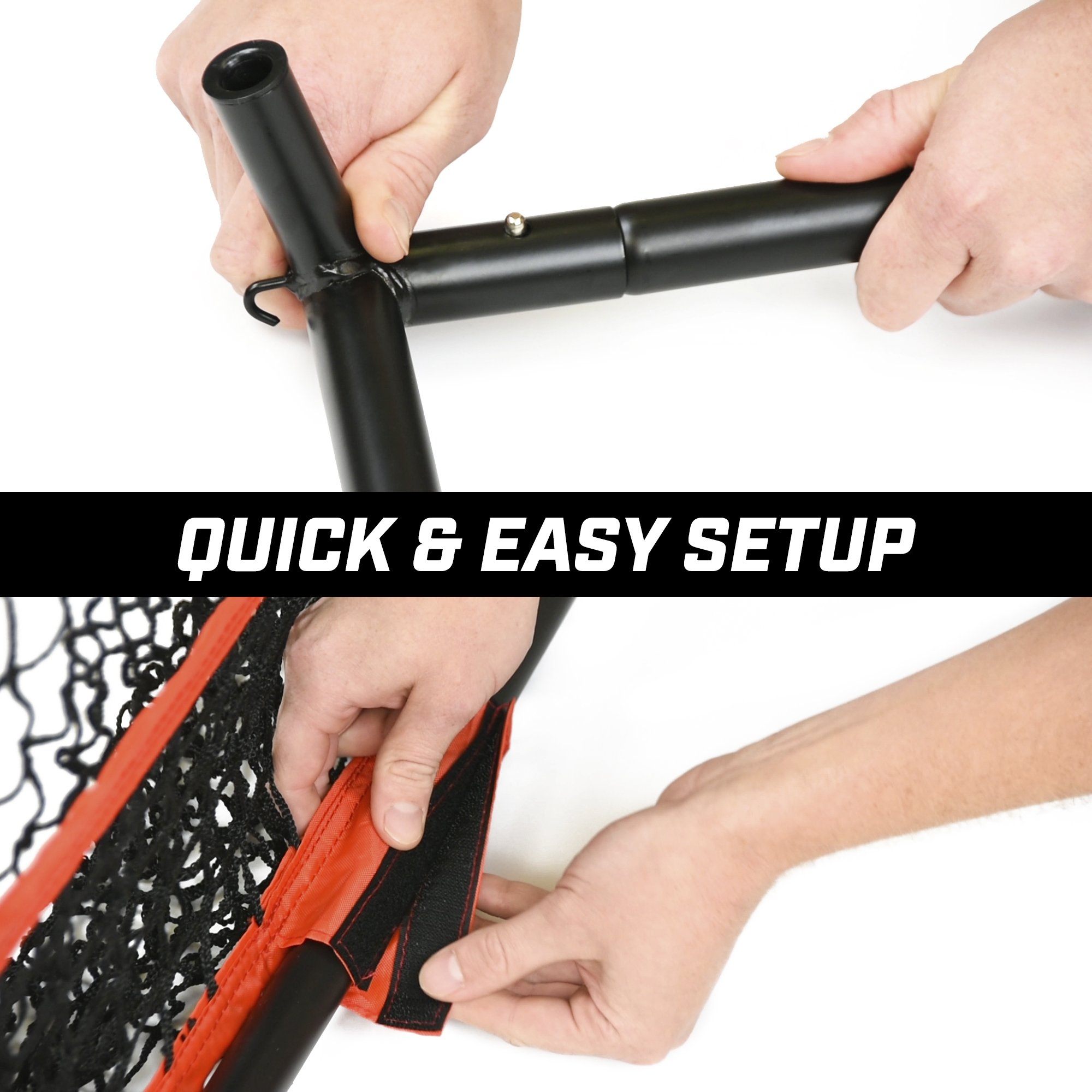 The GoSports 5 ft x 5 ft sports net is a must-have for any Baseball or Softball player. The net is designed to help players train in several key areas: Pitching: Each net includes an adjustable strike zone that attaches to the net so pitchers can dial in their various pitches without needing a catcher. Fielding: Setup the net behind a base and practice fielding balls and throwing accurately into the center of the net. The net sets up in minutes so it can easily be taken to fields for training, but it can also be used in your backyard. The net is made using a powder coated steel frame with a robust polyester net to withstand years of use. It is also backed by a GoSports 6 month warranty so you can buy with confidence. This is a must-have for any Baseball or Softball player looking to take their game to the next level.