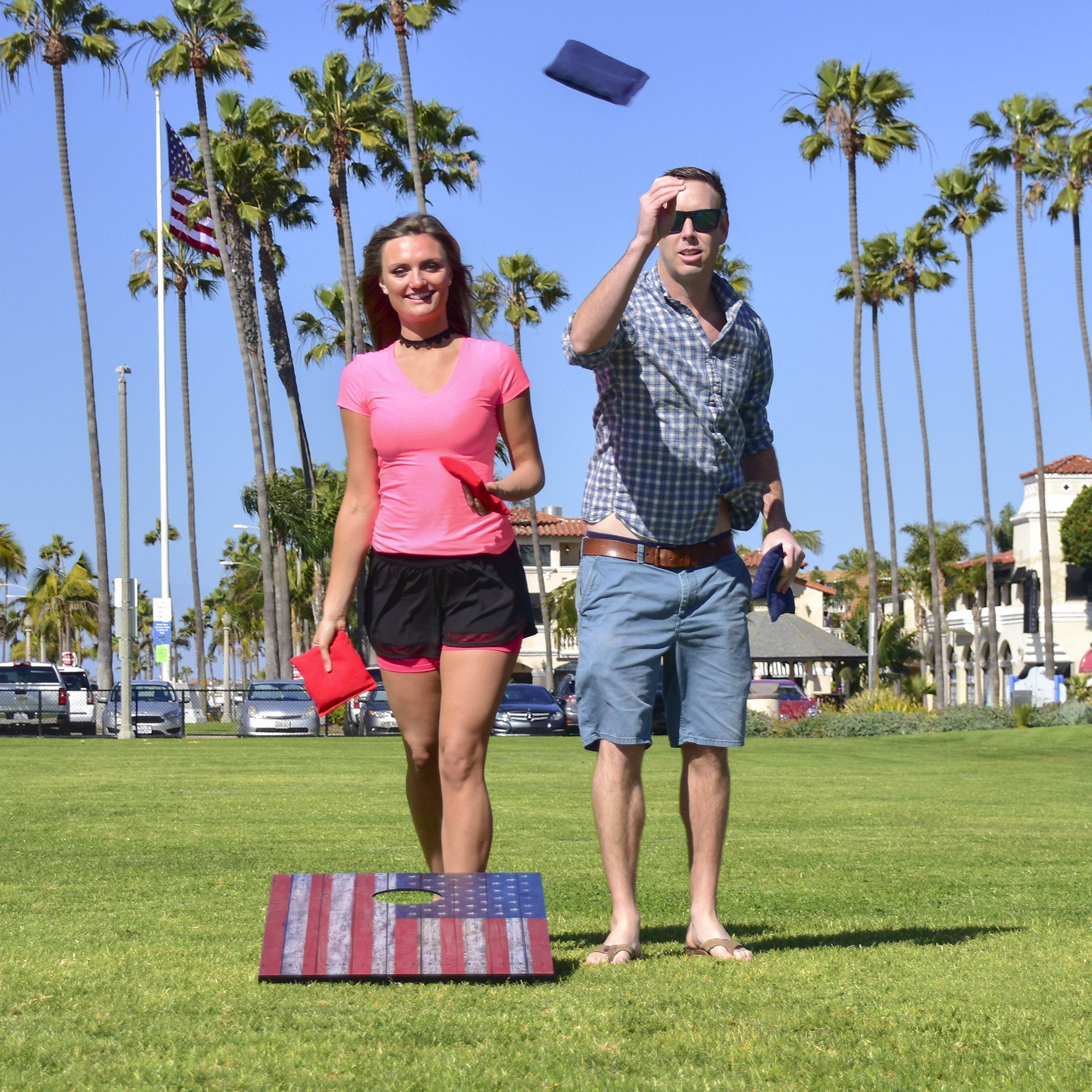 - RUSTIC AMERICAN DESIGN: Vintage inspired cornhole boards designed to look like repurposed barnwood planks featuring the American Flag - the Stars and Stripes design is also perfect for display when not in use