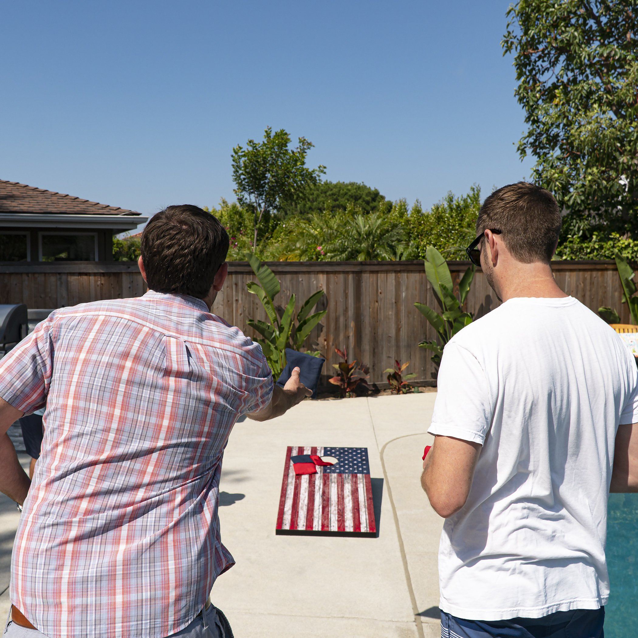 • PATRIOTIC FUN: Game set includes 2 premium water-resistant 4 ft x 2 ft foldable cornhole boards crafted from solid MDF, 8 all-weather regulation bean bags, portable carrying case and rules