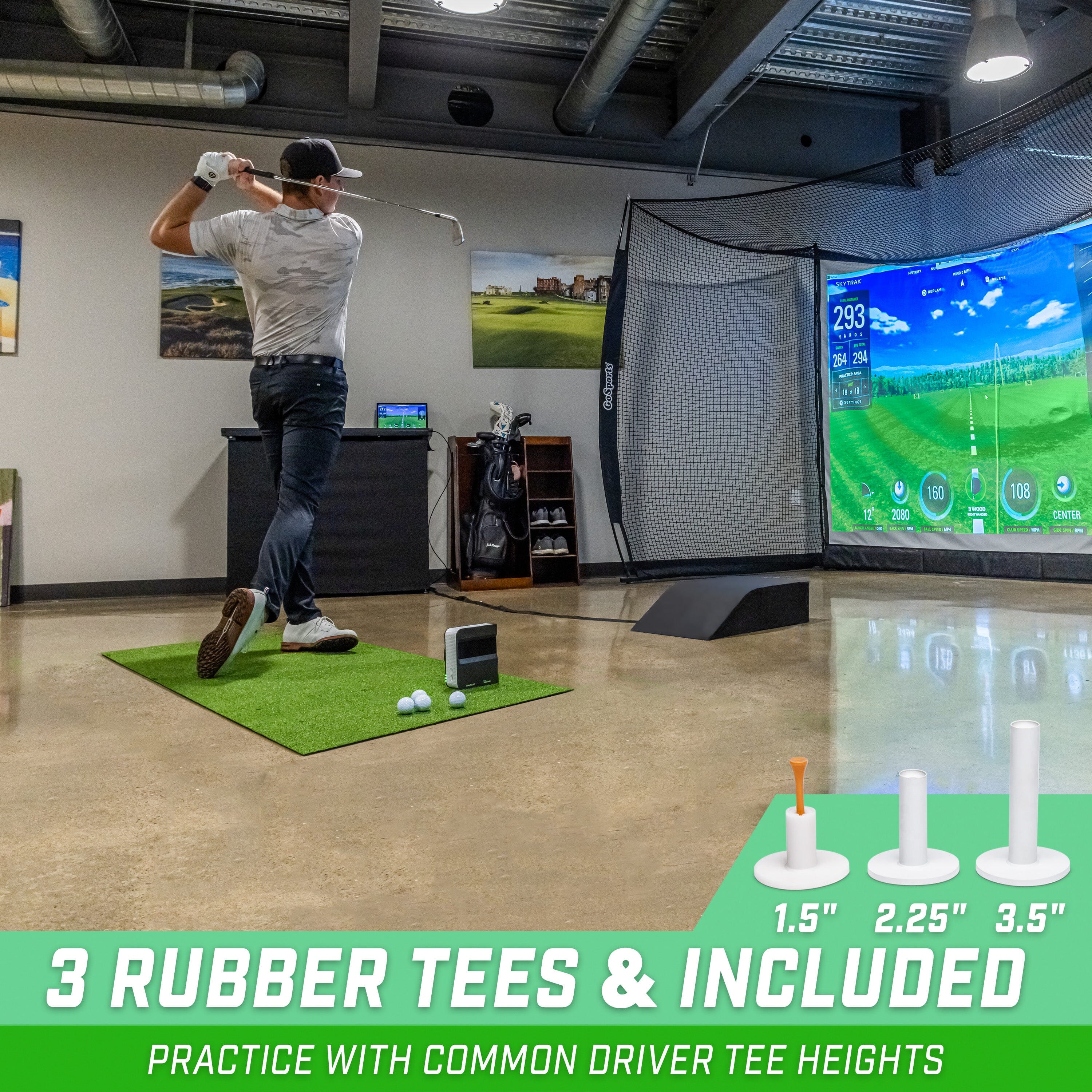 The GoSports Golf Hitting Mat encompasses everything an experienced or growing golfer needs to perfect their swing. GoSports also includes 3 rubber tees with varying heights (1.5 inch with tee holder, 2.5 inch, and 3.25 inch) so you can practice any shot! Now you don't have to sacrifice your lawn or hope for perfect golfing weather. The ready-to-go mat lets you save your lawn when practicing outdoors and is a great addition to any indoor garage or basement setup for year-round practice. We engineered our golf hitting mat to withstand thousands of swings and practice hours, making it ideal for the golfer on the go. Sharpen your golf skills anytime anywhere with the Go Sports Golf Hitting Mat!
