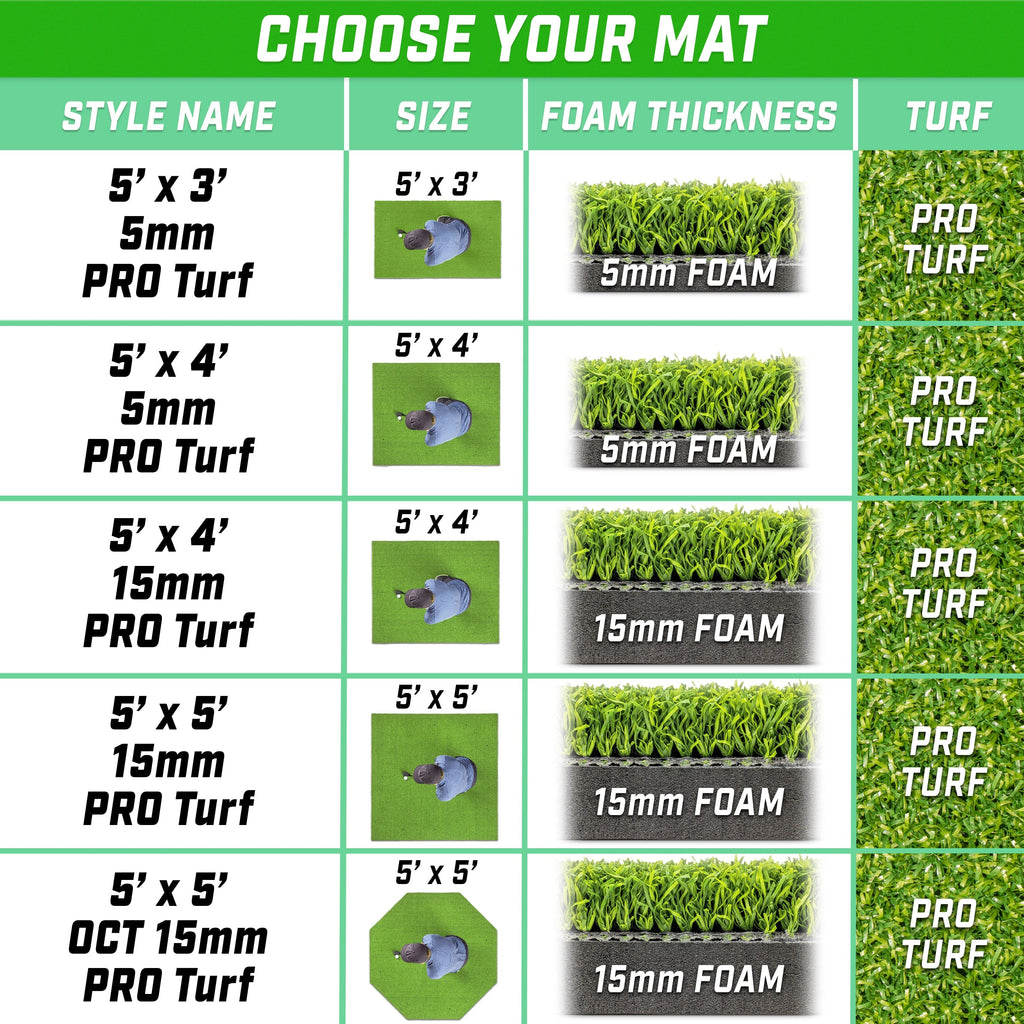 - CHOOSE YOUR MAT: Available in multiple sizes and foam thickness to accommodate any golfer; Refer to our chart to choose the right mat for you; Includes 3 rubber tees