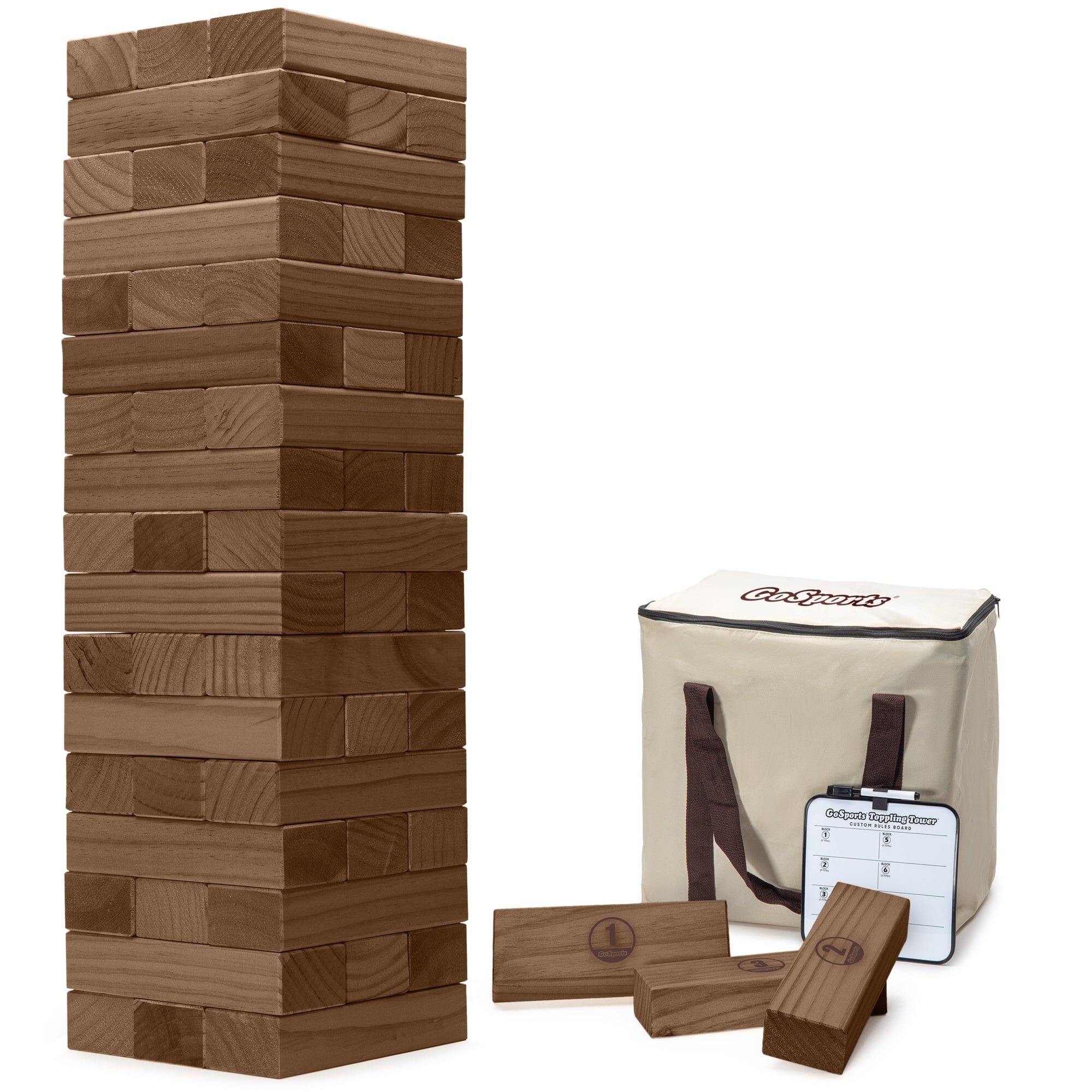 GoSports Giant Wooden Outdoor Stacking Game – Large Toppling Tower with Case