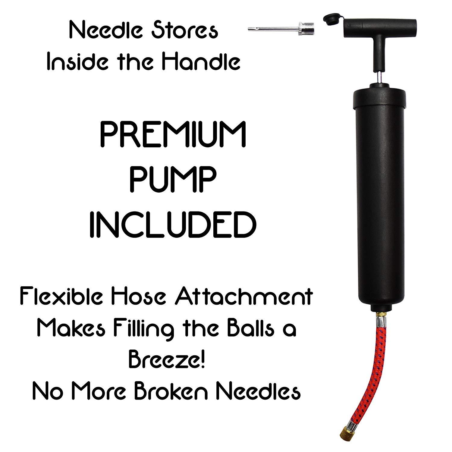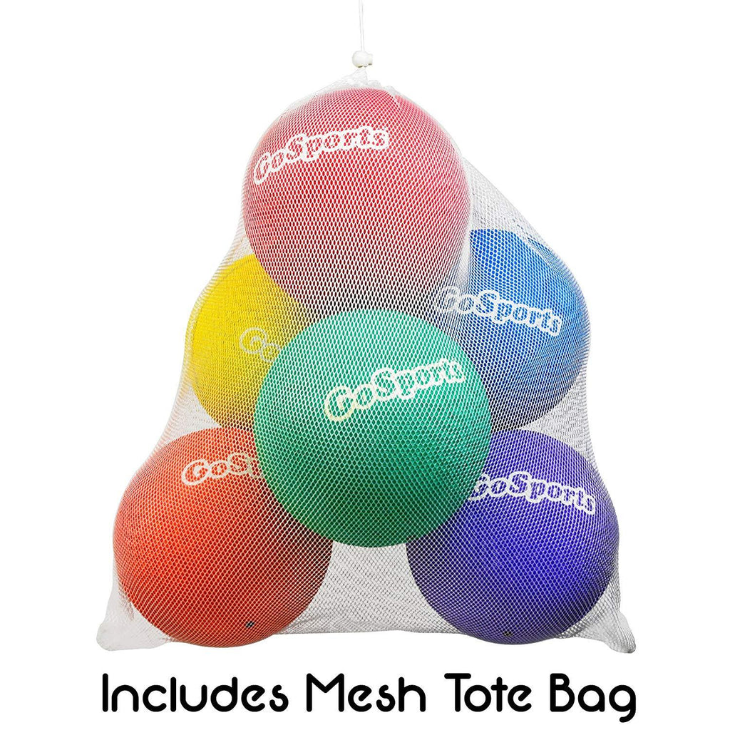 The GoSports rubber playground ball set includes six of the best all-around playground balls available. The balls are 10 inch size and are made with an extremely durable rubber skin that will not tear, rip or pop. The textured surface provides maximum grip for both indoor and outdoor play. The balls ship deflated, but we include a premium hand pump and needle (stored inside pump handle) with a flexible connector that makes inflation a breeze. We also include a convenient mesh tote bag that can hold all 6 balls. These balls are very versatile and are perfect for games such as kickball, four square, handball and more. GoSports quality guarantee: If you ever have an issue with your GoSports playground balls, GoSports will immediately act to fix the problem and make things right as we 100% stand behind our products. Thank you for supporting GoSports.