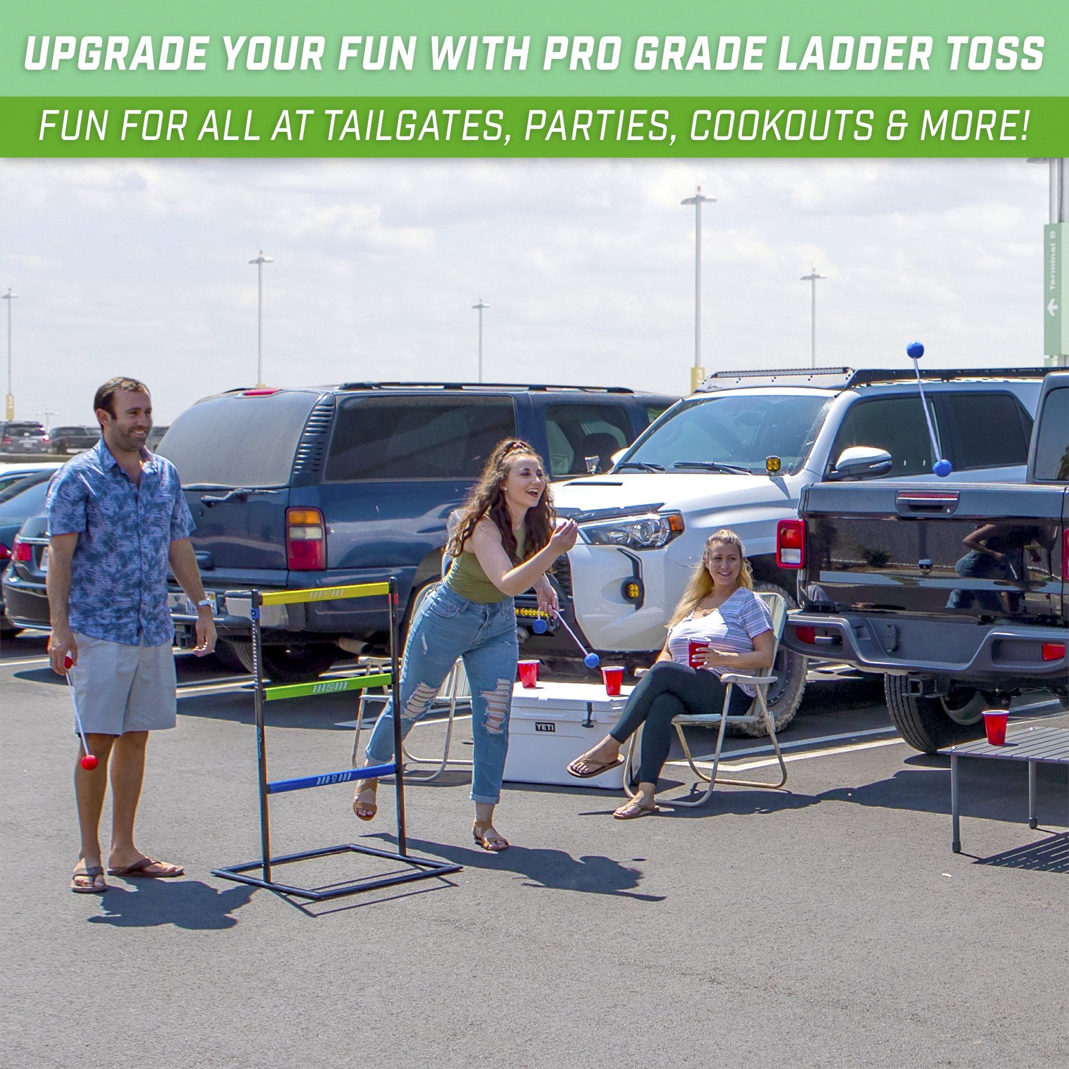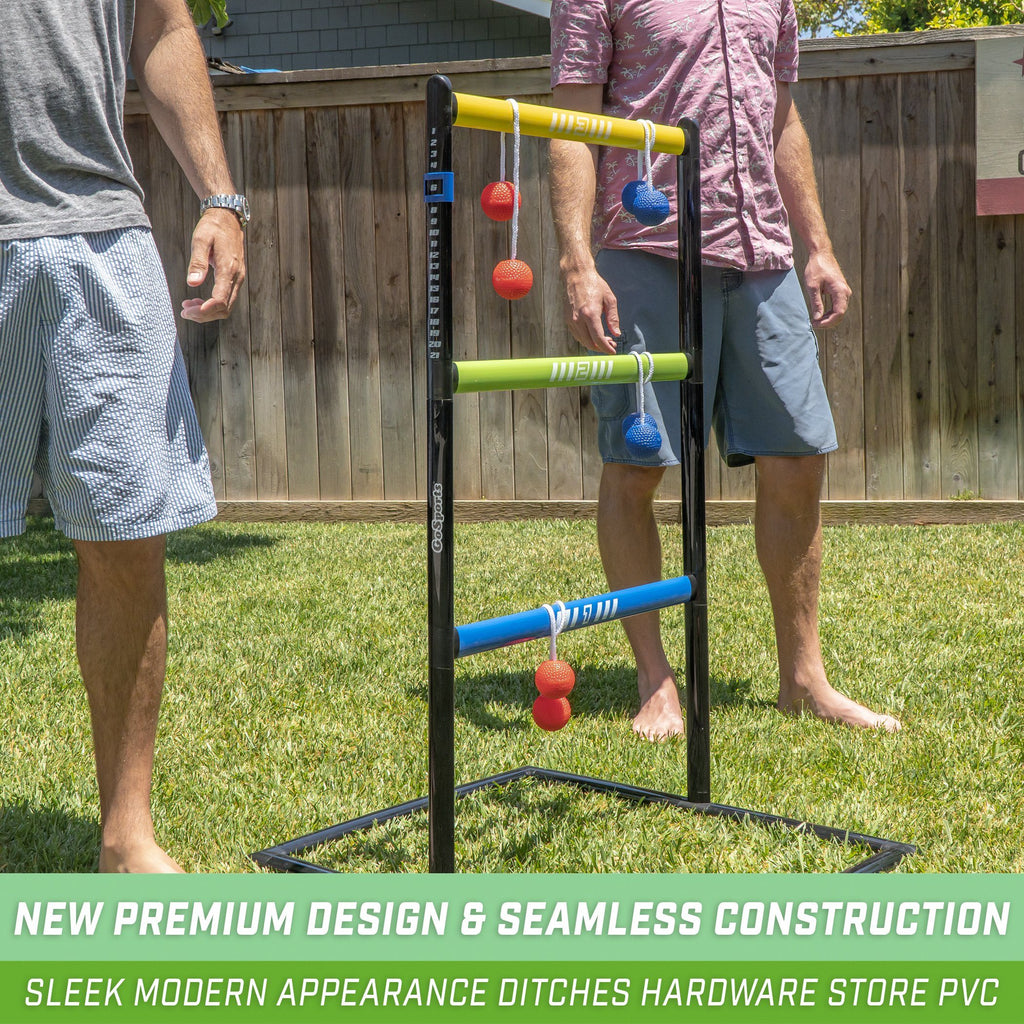 PRO GRADE LADDER TOSS: Enjoy a brand new modern look made with durability and style in mind; Featuring ultra sturdy reinforced PVC to withstand all the fun of ladder toss