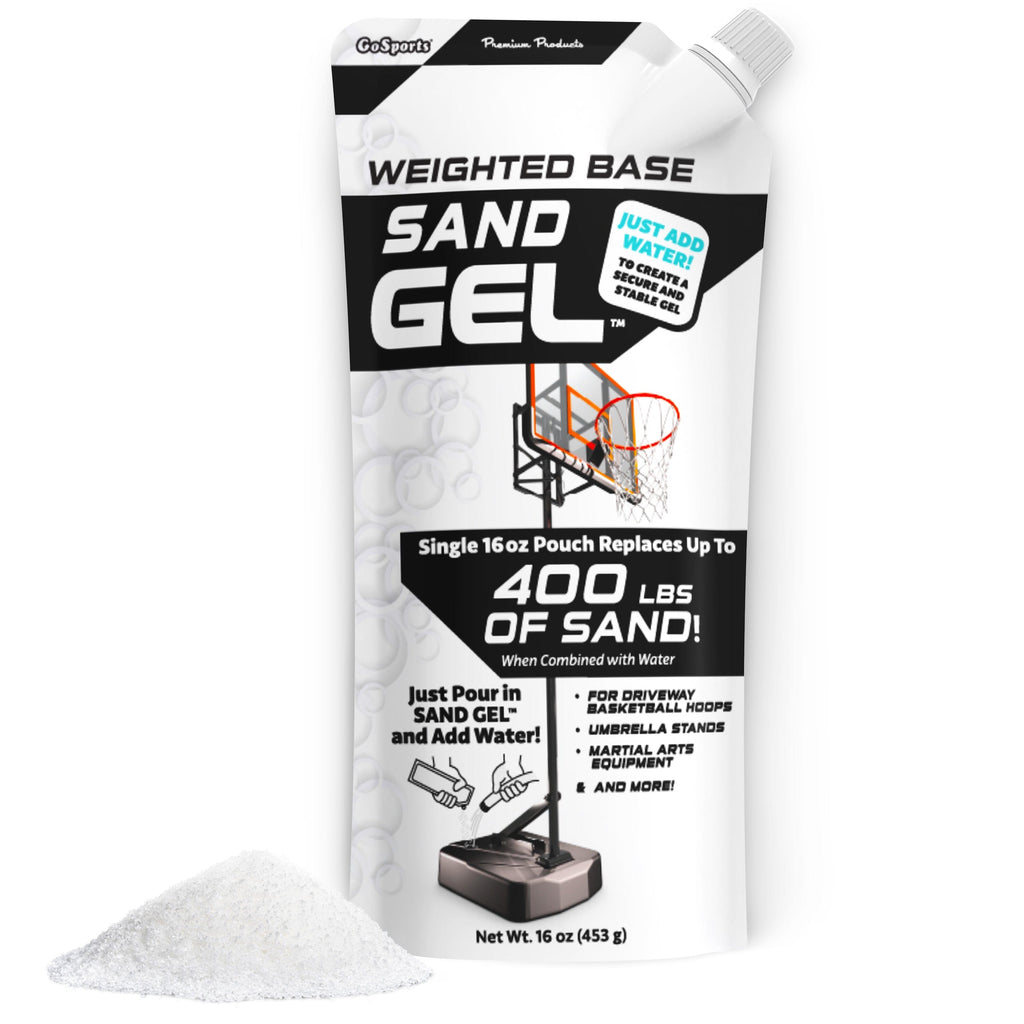GoSports Sand Gel offers an innovative and superior alternative to traditional sandbags and water for stabilizing outdoor equipment bases. Just one pouch replaces up to 400 lbs of sand. Simply add fresh water to create a firm, stable gel that offers enhanced stability, with none of the mess or hassle of sand and water. Unlike sand, which can make a mess, or water, which can slosh around, Sand Gel absorbs up to 400 times its weight in water for firm stability to reduce the risk of tipping or blowing over. Ideal for basketball hoops, patio umbrella bases, volleyball nets, punching bags, and boxing equipment. The gel solidifies once set, which means there’s no risk of leaks damaging indoor flooring or carpets. Additionally, Sand Gel is resistant to freezing, unlike water, which can freeze and crack, making it ideal for year-round use. For disposal, you can safely use salt to break it down and dispose of it down drains. Get maximum stability and savings with GoSports Sand Gel!